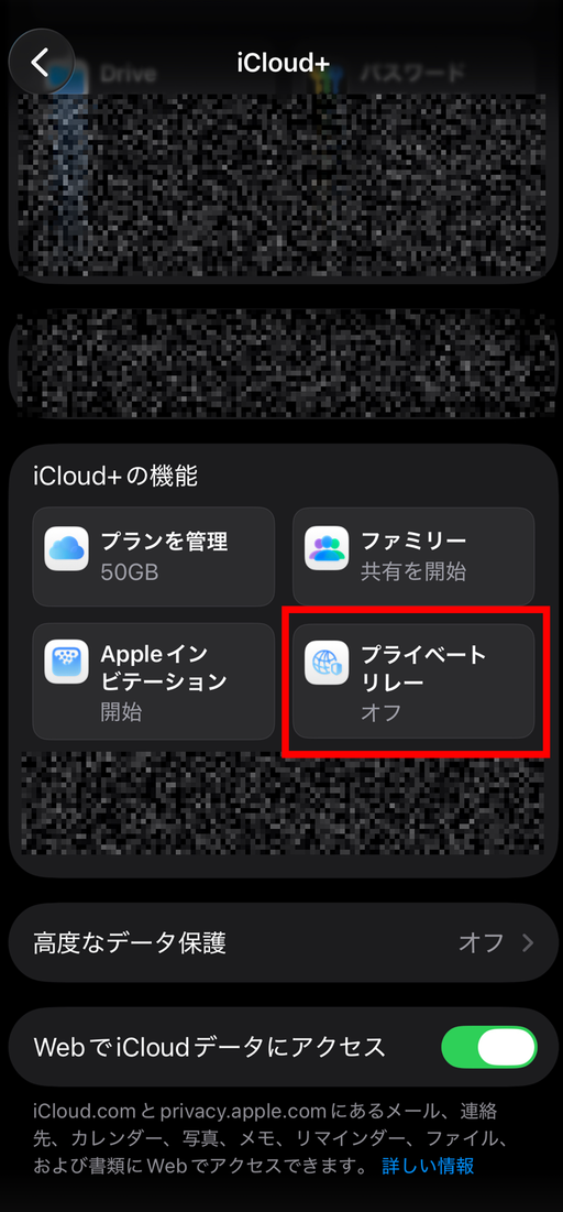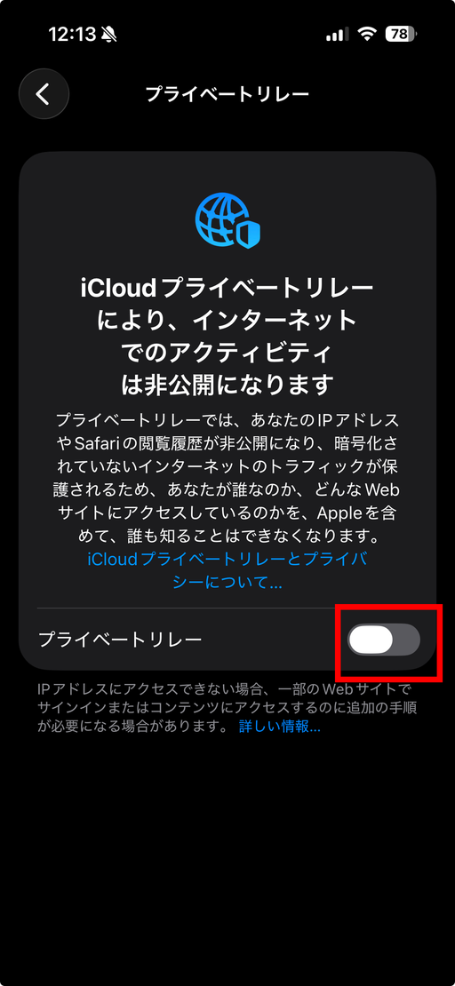 - 「プライベートリレーをオフにする」ボタンをタップします。