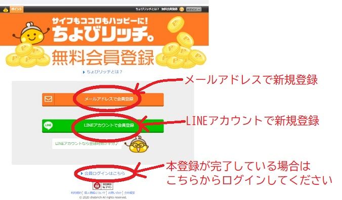 ちょびリッチへ会員登録するには、どうしたらいいですか?